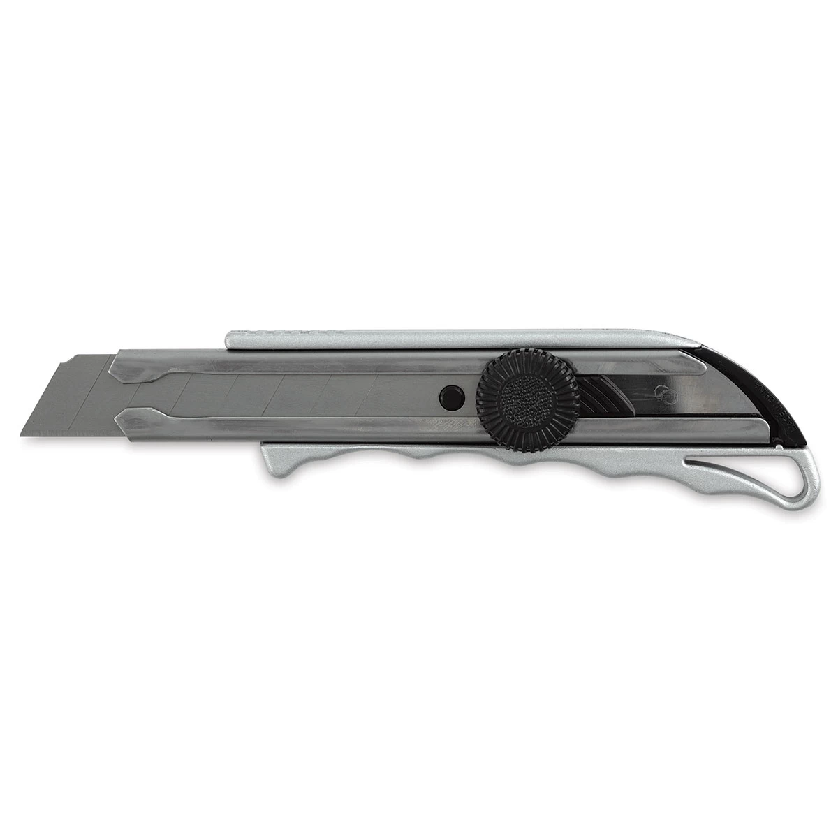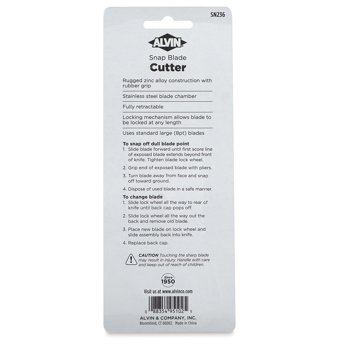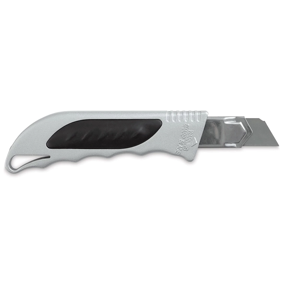 Keep an Alvin Heavy Duty Utility Knife on hand for your tougher creative cutting projects. This powerful zinc alloy knife features a ratcheted wheel mechanism that allows you to lock the blade at any length. It has an anti-slip, rubber grip handle for easy use, along with a stainless steel blade cha…
