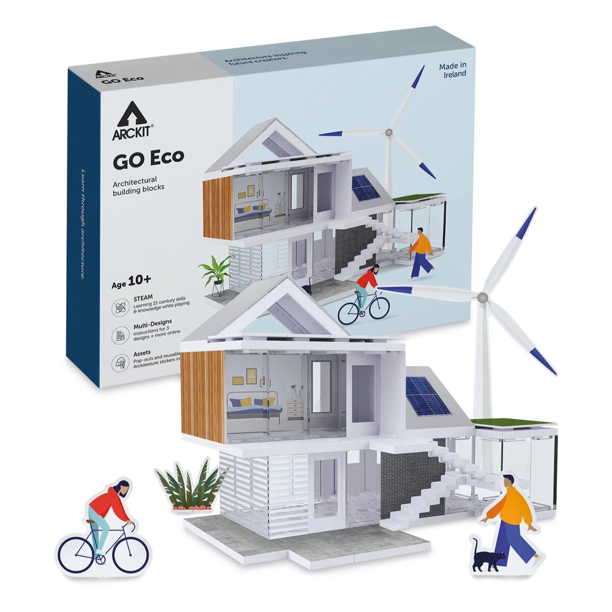 Budding architects will love creating an environmentally friendly and energy-efficient home with the Arckit Go Eco Architectural Model Building Kit. With architectural building blocks, reusable decals, cardboard pop-outs, and a pitched roof design set, this building kit encourages kids to develop th…