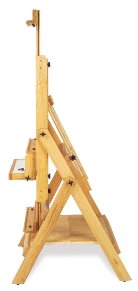 Beautiful and strong, the Halley Easel holds canvases up to 80″ tall. It has a multitude of height and tilt settings, including a flat position for use as a table, and a forward-tilting position for pastels.