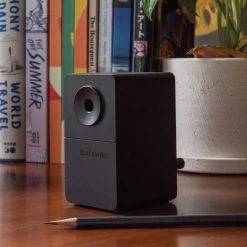 Keep a perfect point on your pencils with the smart-looking Blackwing Desktop Sharpener. Made of durable black metal and polymer, this sharpener has a helix blade that does the job fast and efficiently. When your pencil reaches the right point, an automatic brake prevents over-sharpening, and the pe…