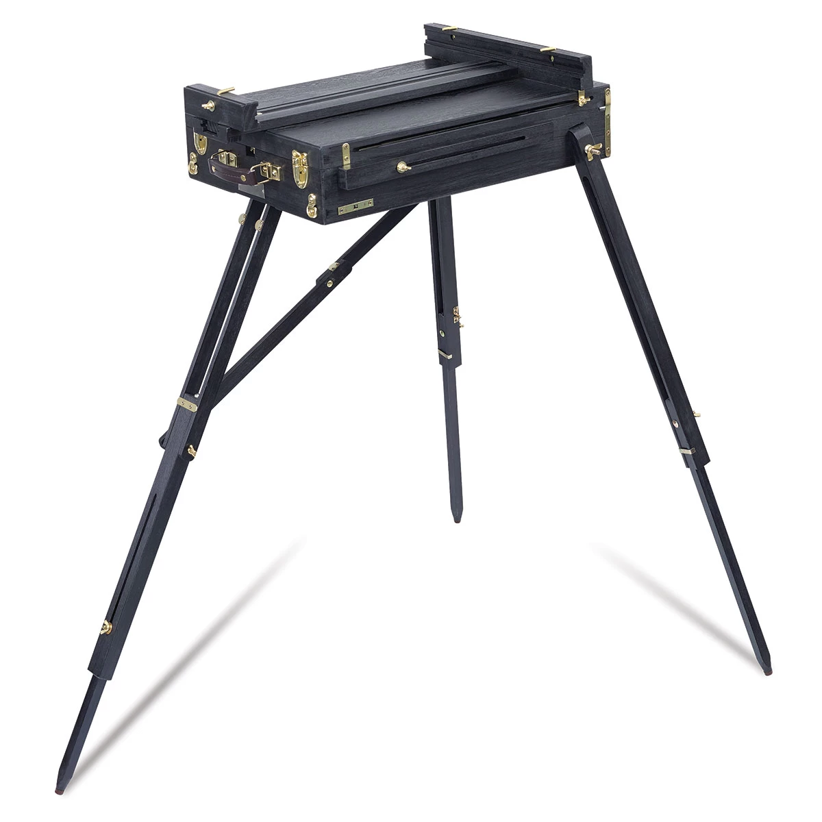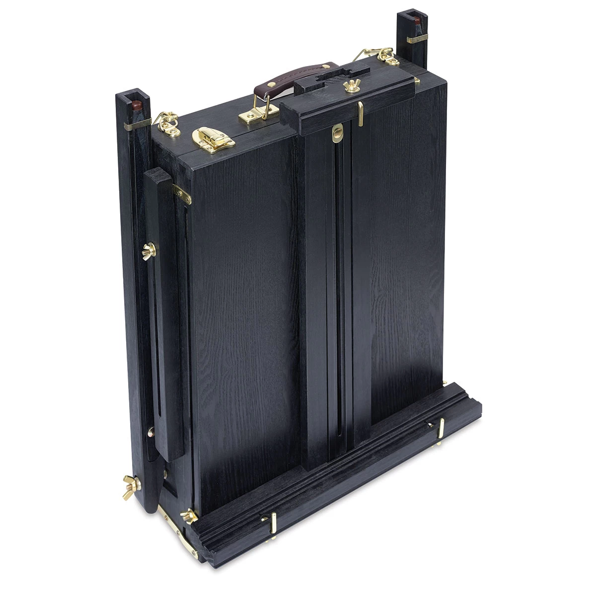 Make a statement in your studio or on a plein air outing! The striking Blick Noir French Easel by Jullian is made from premium pinewood, stained black, and varnished for durability. Beautifully handcrafted and finished with traditional Jullian brass-plated parts, the easel has a lightweight, portabl…