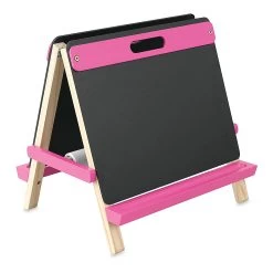 Our Blick Studio Children’s Tabletop Easel is a fun, colorful, two-sided easel that features a dry erase board on one side and a chalkboard on the other — ready for drawing or painting projects in almost any medium. It even includes a built-in hanging rod that holds a roll of paper threade…