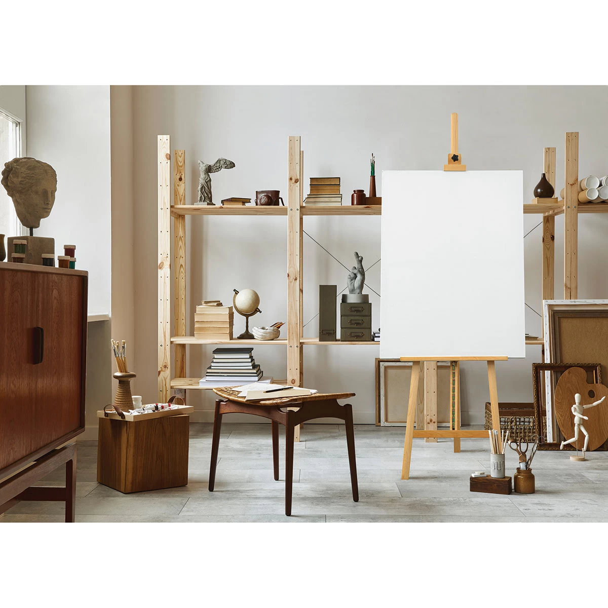 With a compact footprint of just 22″W × 39″D, yet able to hold a canvas or panel up to 50″ high, our Inclinable Lyre Easel is a versatile solution for small studios and tight workspaces.