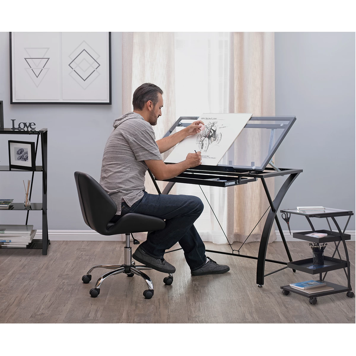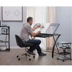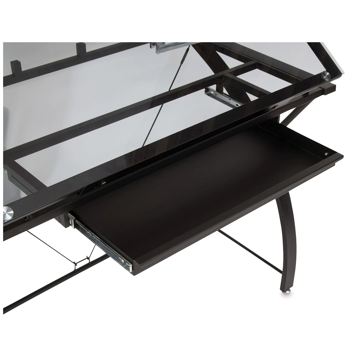 The Blick Studio Polaris Table by Studio Designs is perfect for sketching and tracing. It features a tempered glass top and a durable, powder-coated steel frame.