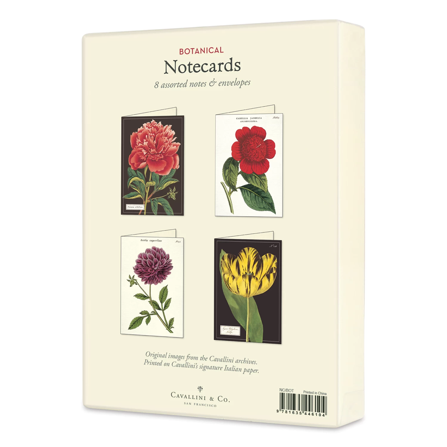Send heartfelt thank-you notes or write letters to a friend or family member with Cavallini Botanical Boxed Note Cards. This set contains eight blank envelopes and eight folded note cards featuring four different floral designs with two cards per design. These beautiful cards are printed on Cavallin…