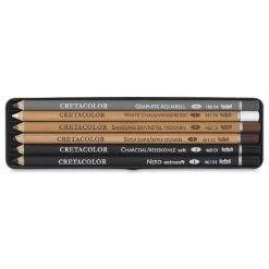 Set of 6 – This set includes the following materials:2 chalk pencils (Sanguine and Sepia)1 pastel pencil (White)1 charcoal pencil1 wat…