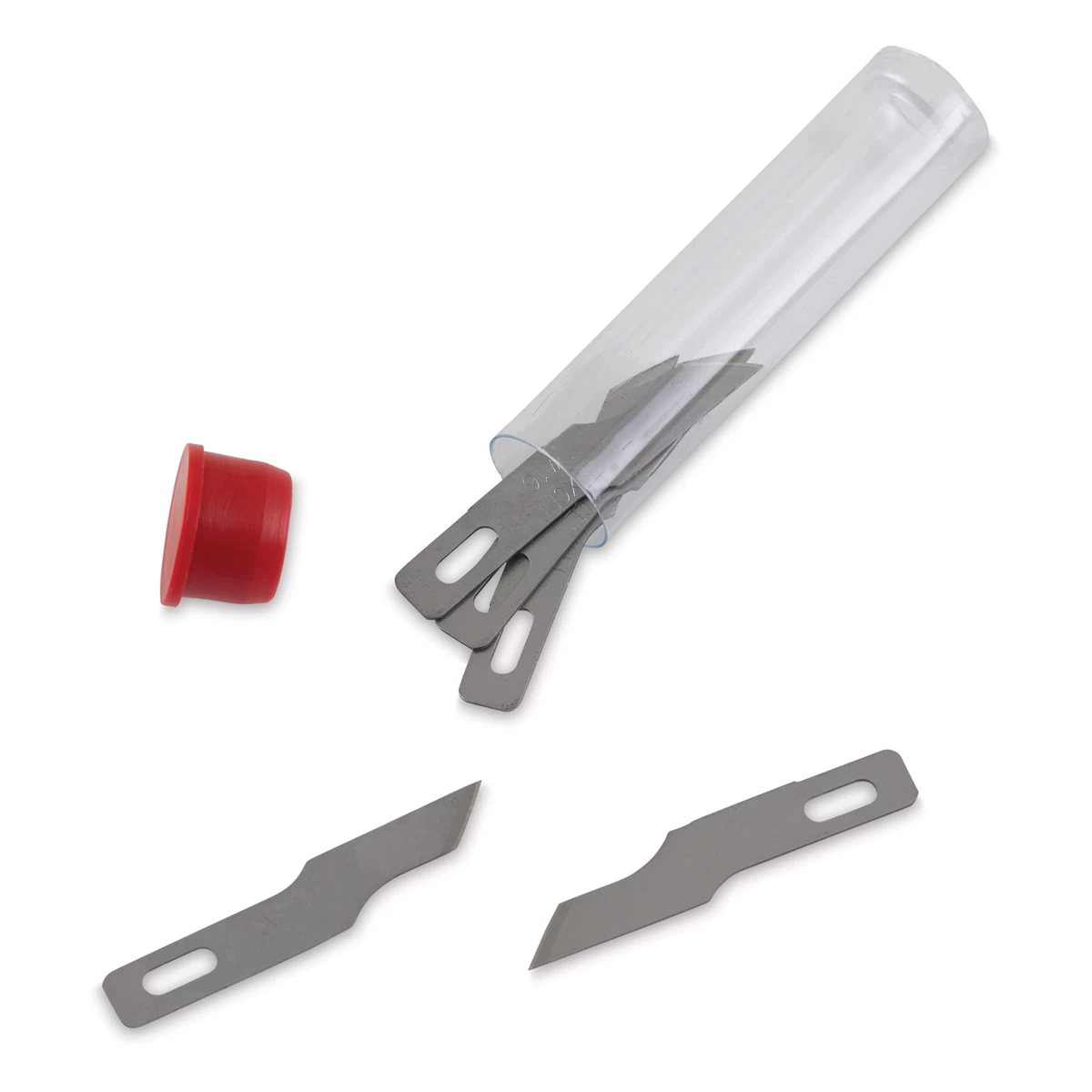 Excel Blades Stencil Edge Blades feature strong, flexible narrow tips and are ideal for cutting thinner materials, including paper, card stock, stencils, film, photographs, tape, cork, and more. These versatile double-honed replacement blades are constructed from carbon steel. They fit Excel K1 alum…
