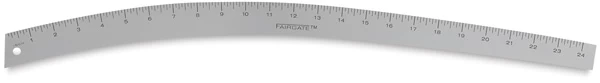 Used by fashion designers for lapels, elbows, skirts, slacks, trousers, and anywhere a special contour is needed, the Fairgate Flexible Curve Stick is made of aluminum and calibrated with standard American measurements in 1/8th inch increments.