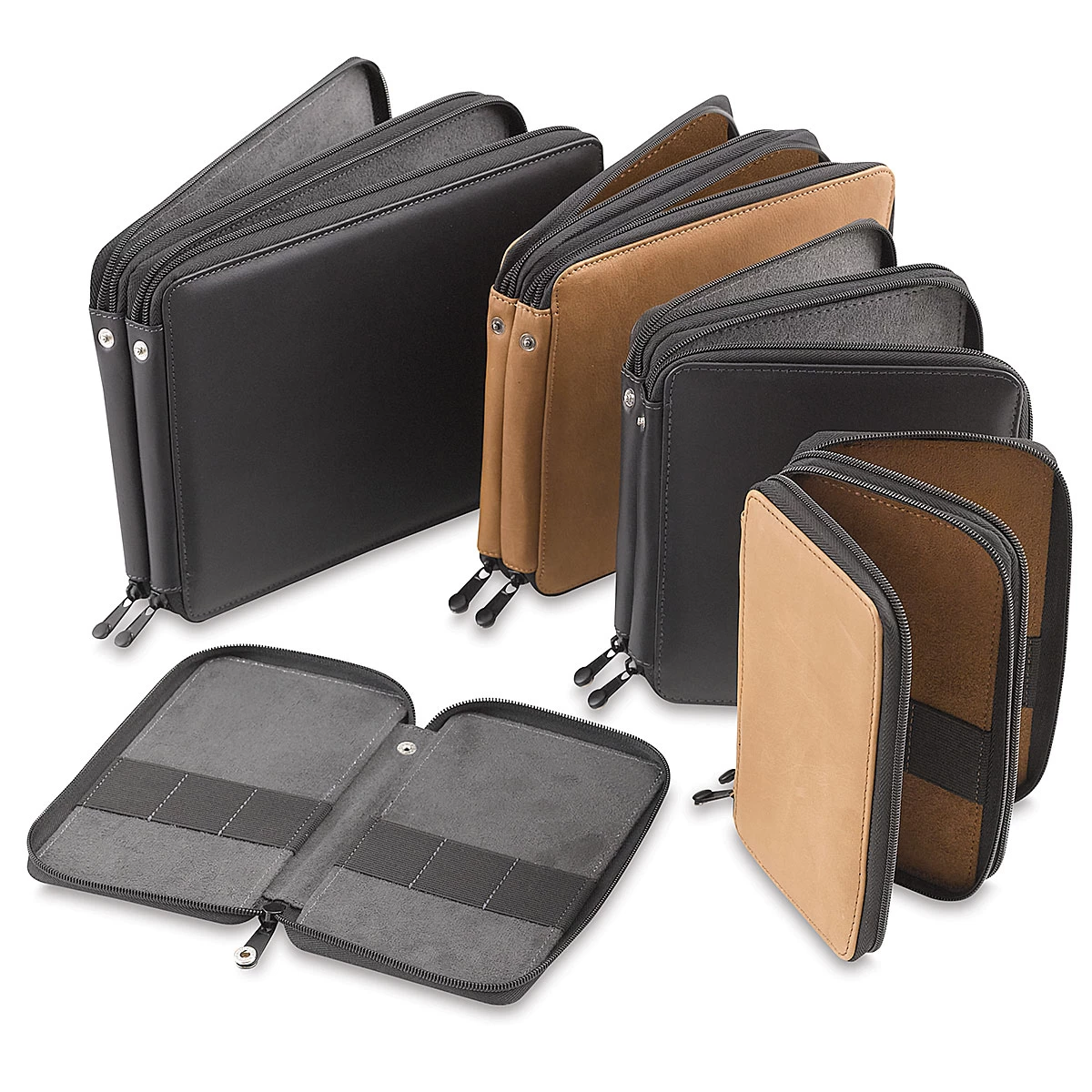 These classic cases feature contrast stitching and flocked interiors. Loops inside the case hold the pencils in grou…