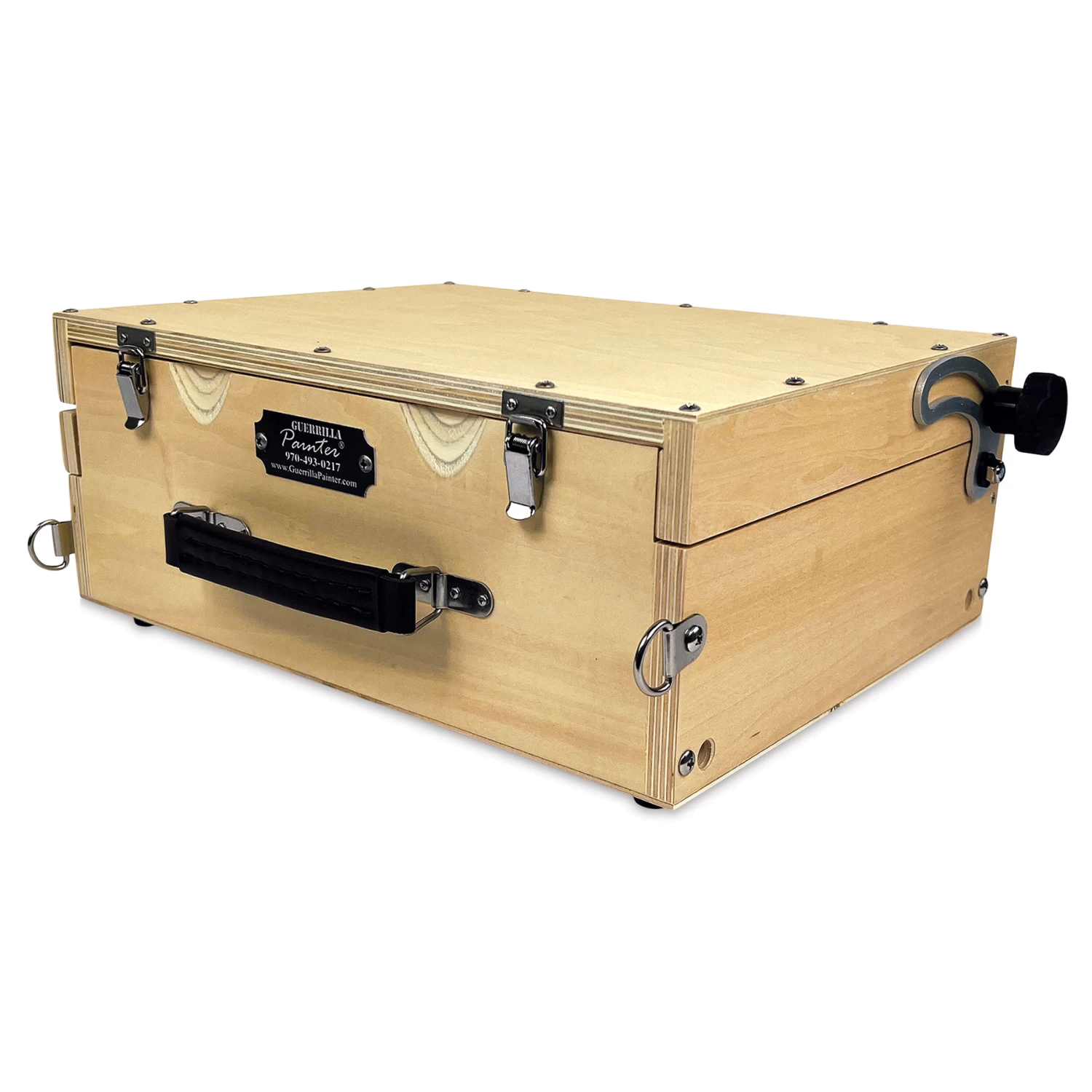 The Guerrilla Painter Guerrilla Box Travel Kit includes various accessories and the Guerrilla Box, Guerrilla Painter’s most popular pochade, which is crafted of strong, rugged, oiled basswood laminate with stainless steel hardware. Offering more than 80% of the storage capacity of a traditional Fren…