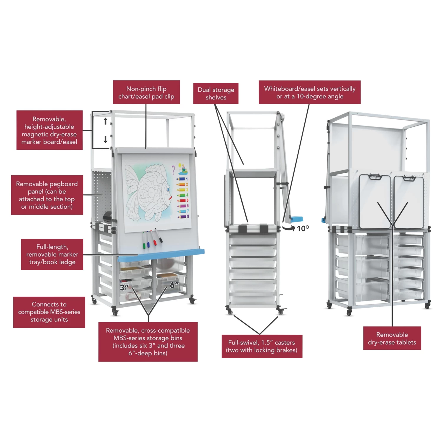 Keep organized while staying mobile during your school day with Luxor Modular Teacher Easel with Storage. This durable, powder-coated steel frame easel is built for versatility, with a magnetic dry-erase marker board that doubles as an easel, a non-pinch easel pad clip for flip charts, and a marker …