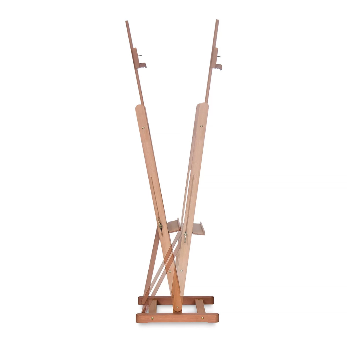 Here’s a back-to-basics studio easel at a practical price. Simple yet attractive, it handles canvases up to 47″ high. The mast adjusts easily via a secure ratchet control, and locks in position by tightening a screw at the rear. Also has a 2½” deep tray.
