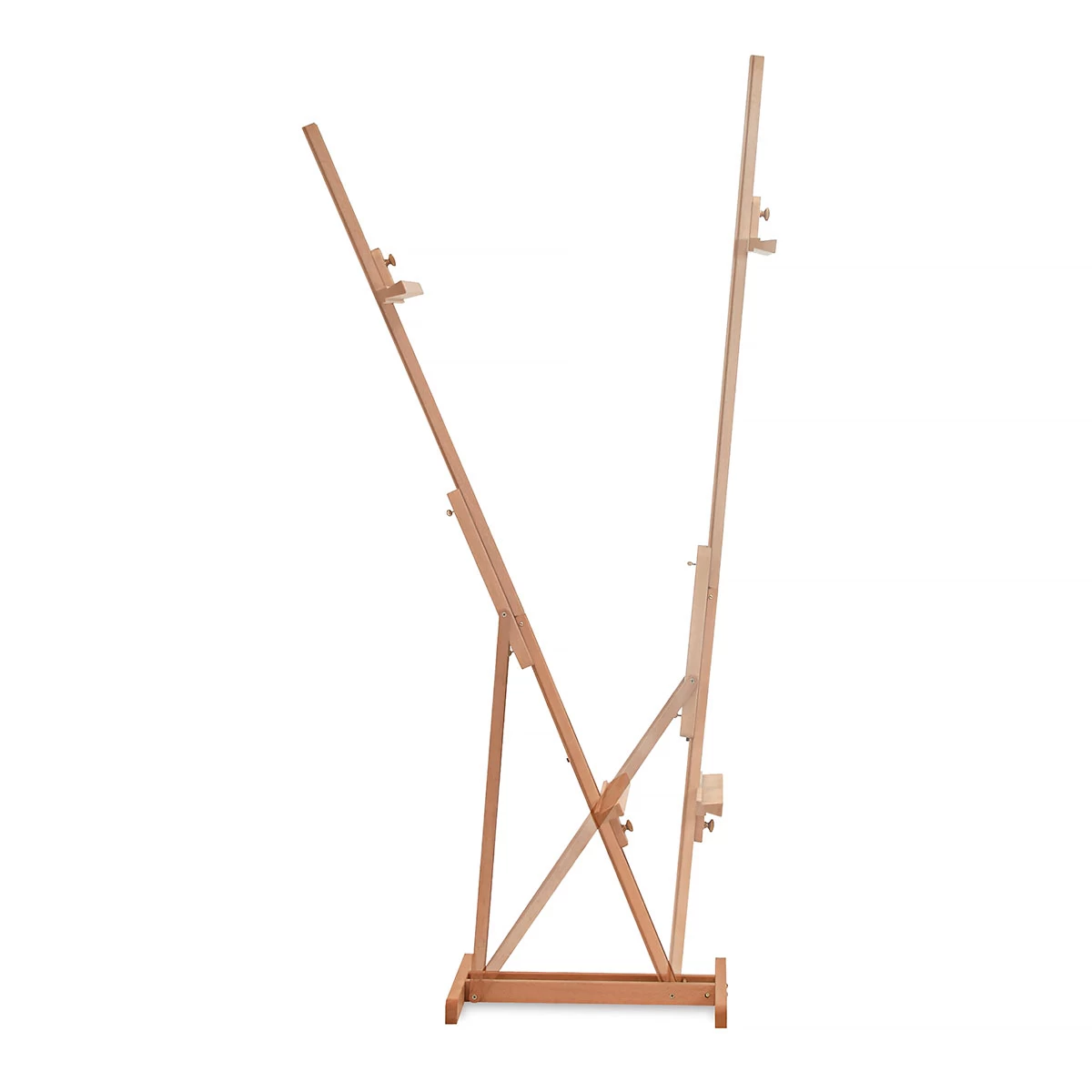 This versatile easel allows an artist to work with a variety of media. It can adjust vertically or horizontally to match your personal style. Crafted with care in Italy from oiled beechwood. Easy assembly required.