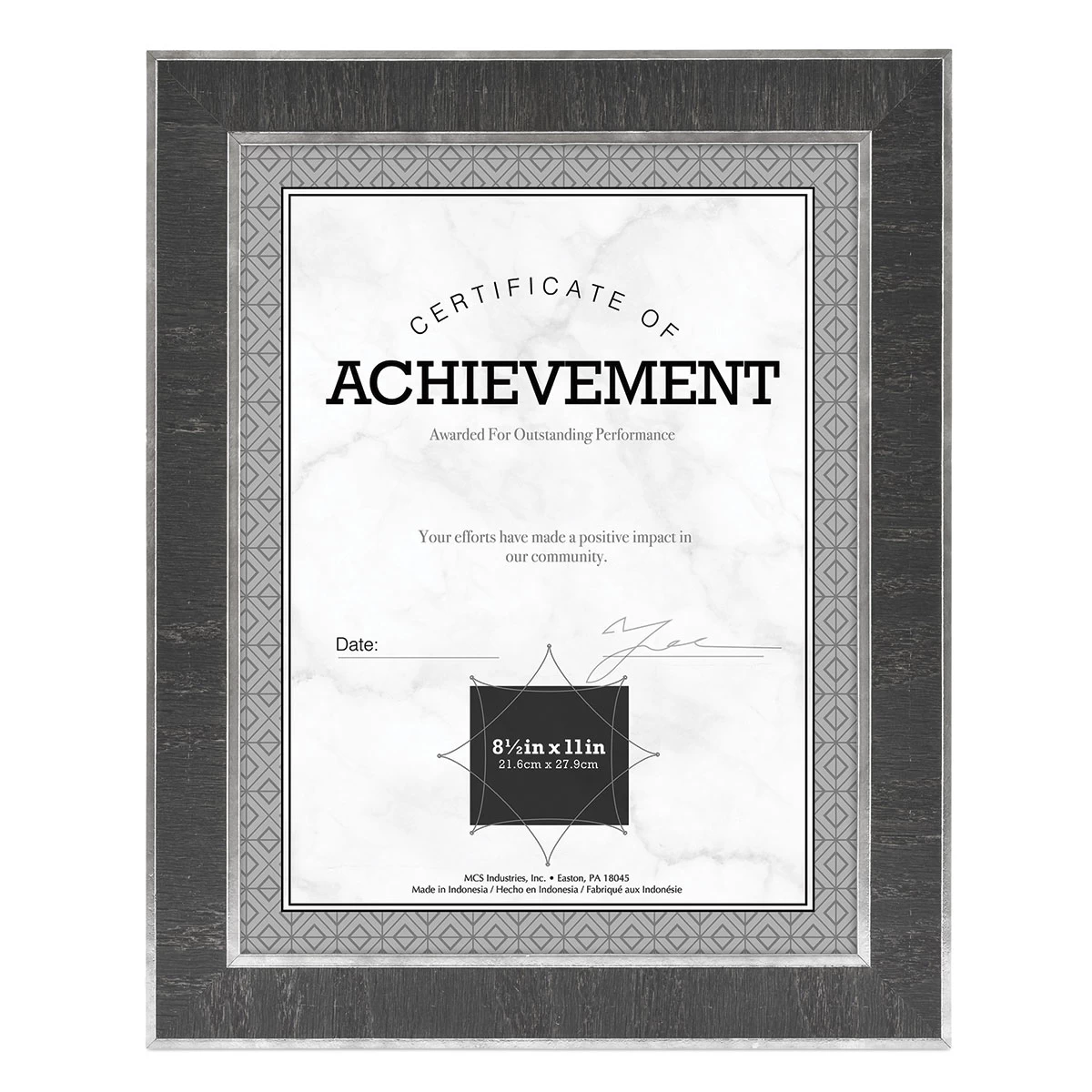 Made from MDF with a gorgeous wood veneer, metallic bezel, and white mat, the MCS Estonian Document Frame is perfect for displaying diplomas, certificates, awards, and other important documents.
