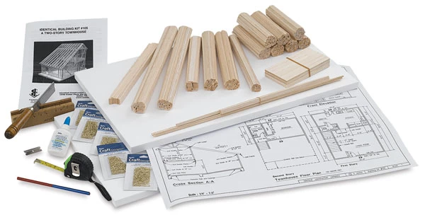 This ¾” scale, two-story townhouse framing kit is framed in accordance with accepted building codes and teaches the fundamentals of sound wood-frame construction. It combines conventionally framed walls with balloon-framed walls (with a vaulted ceiling), and the roof is framed with a co…