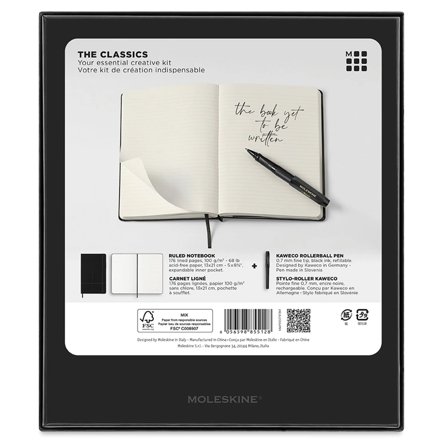 Limited Edition! The Moleskine Classic Notebook and Pen Set is your essential creative kit in timeless black. Beautifully packaged in a reusable gift box, it includes a Moleskine Classic Notebook with black hard covers, an elastic closure, ribbon bookmark, expandable inner pocket, and 176 pages …