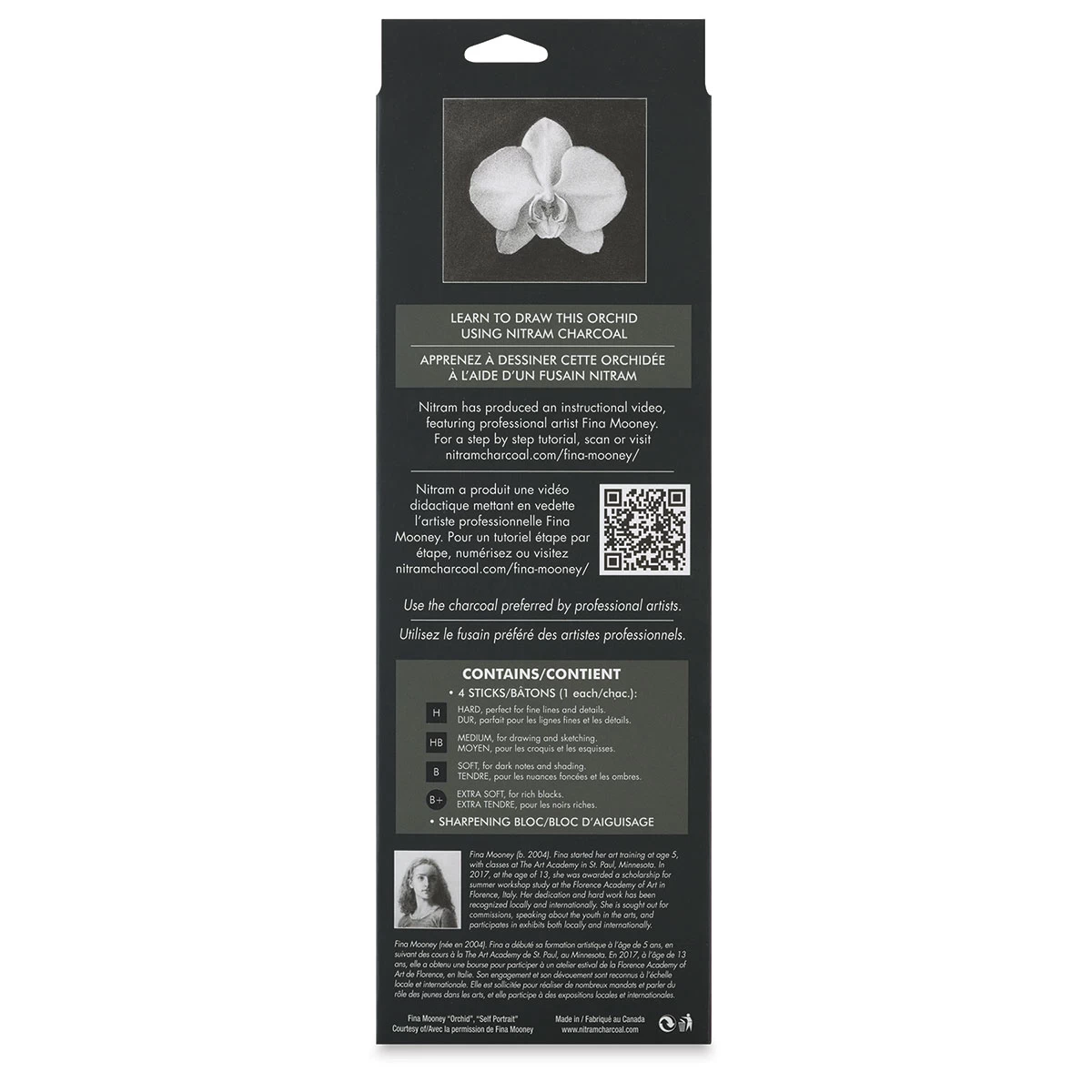 A great introduction to Nitram fine art charcoal, the Nitram Starter Pack contains four charcoal sticks (one each of H, HB, B, and B+), plus a slim sharpening bloc and extra sanding pads.