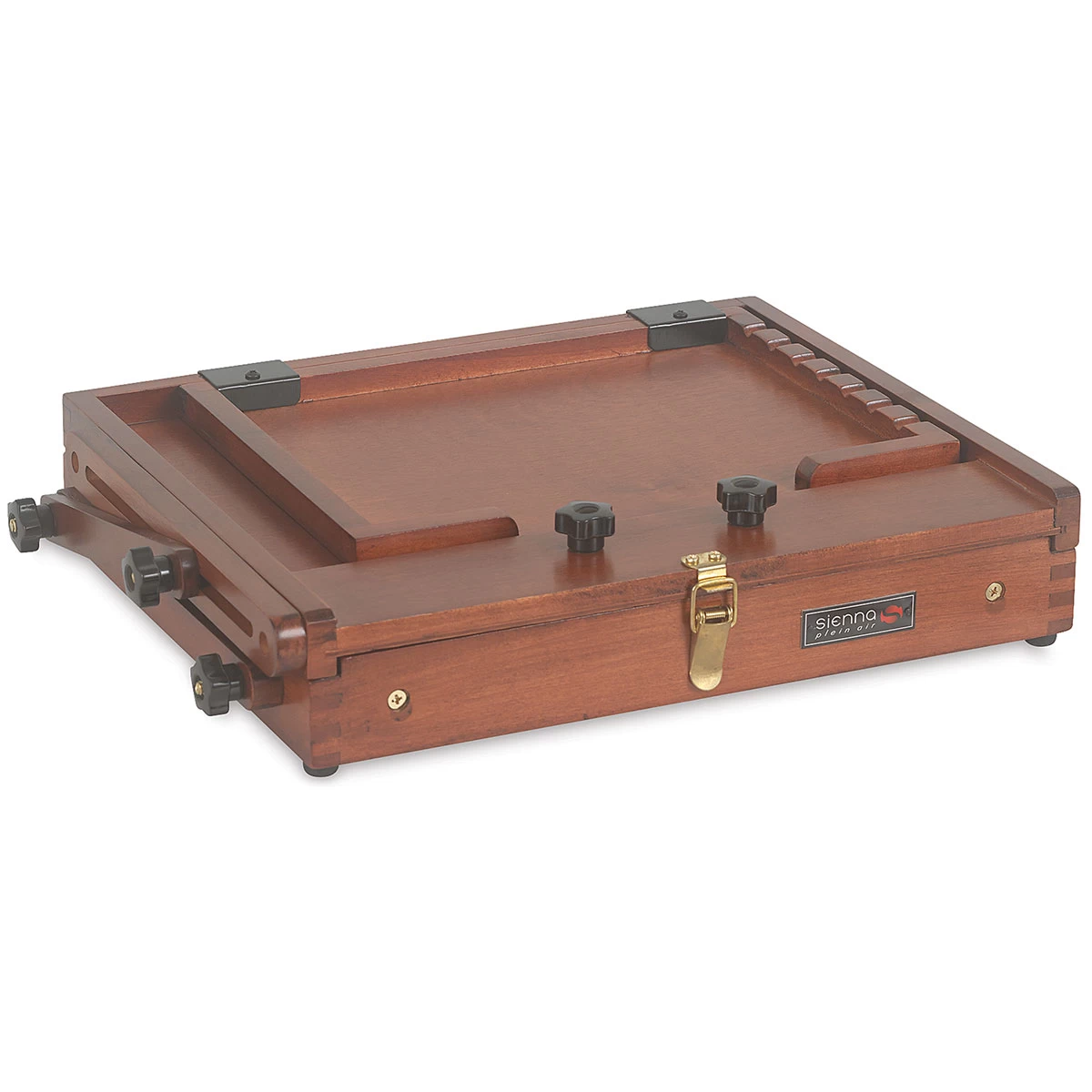 Built with strong finger-joint construction using poplar, maple, and Baltic birch, Sienna Plein Air Pochades combine an easel and a palette in one. All sizes feature adjustable canvas holders that support panels or stretched canvases equally well, along with a foldout brush tray that holds seven bru…