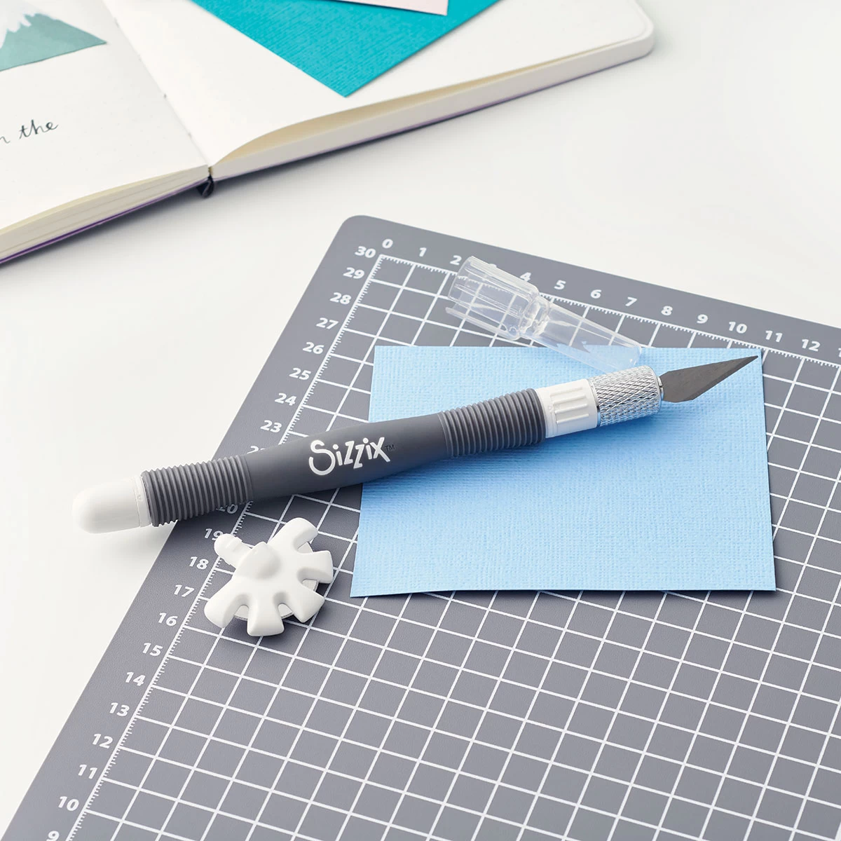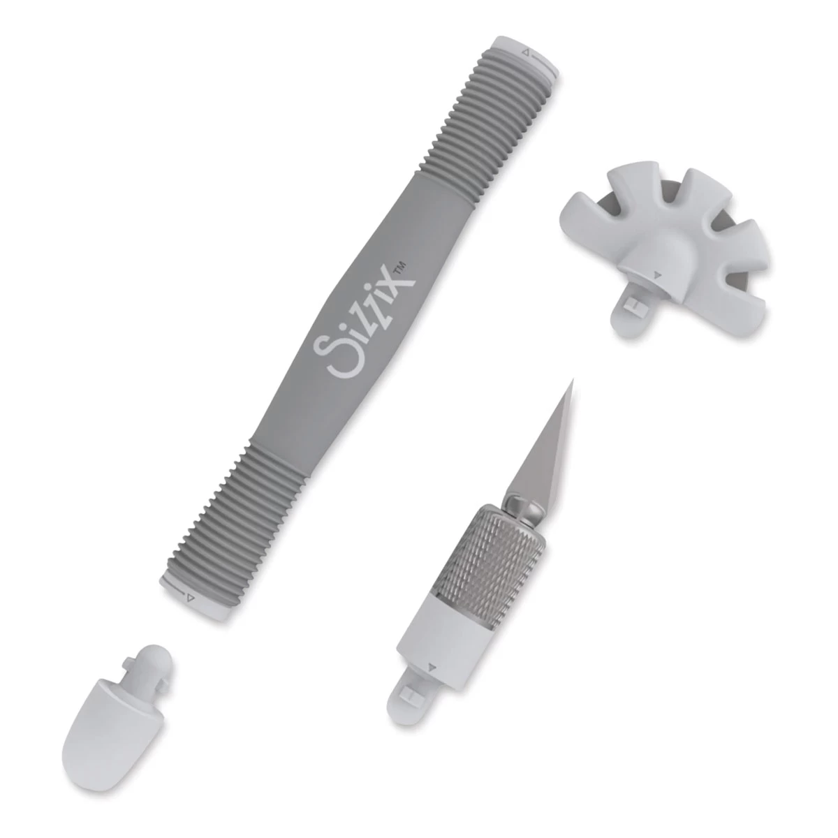 Use the Sizzix Multi-Tool Starter Kit for do-it-yourself art projects, paper crafts, and more. Its dual-sided handle comes with two heads. Use the craft knife head to trim, cut, and remove paper from die cuts. Use the distressing blade head to create distressed paper edges for an elegant, aged appea…