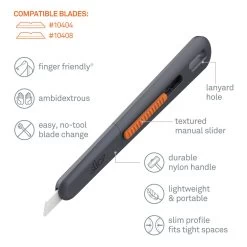 The Slice Manual Slim Pen Cutter has manual locking retraction with two cutting positions. It’s an excellent tool for crafting and precision cutting tasks. The handle is made from durable nylon, and the safety blade is made of super-tough zirconium oxide. The blade lasts 11 times longer than metal, …