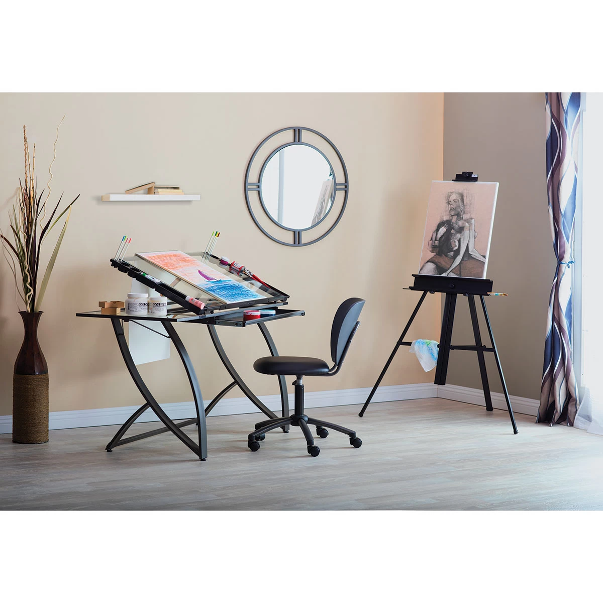 Highly versatile, the Studio Designs Futura Luxe Craft Table can be used for a wide variety of projects. The main table top tilts up to 35° — perfect for drawing — and can be used as a light table for tracing. Or, lay the table top flat for craft projects and more.