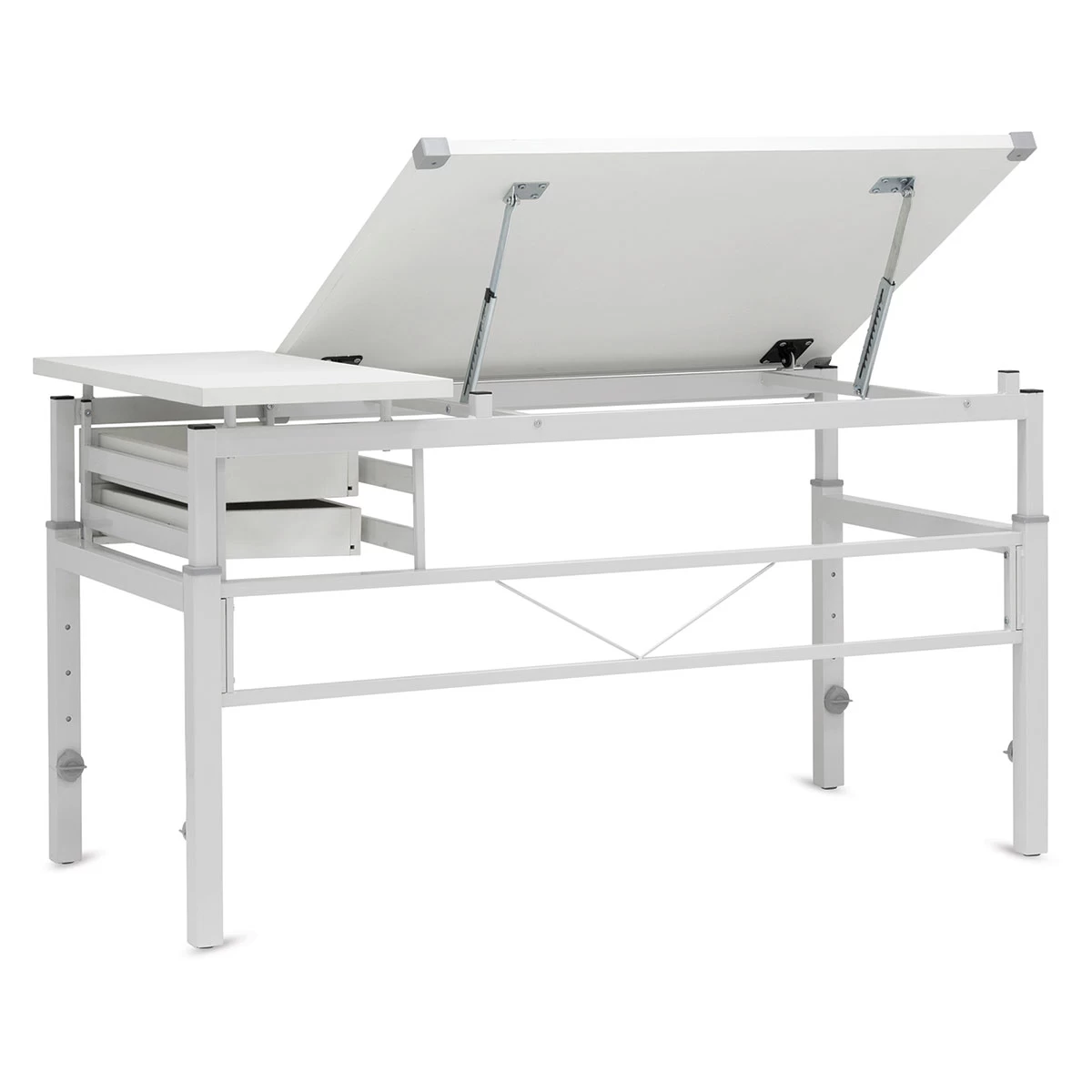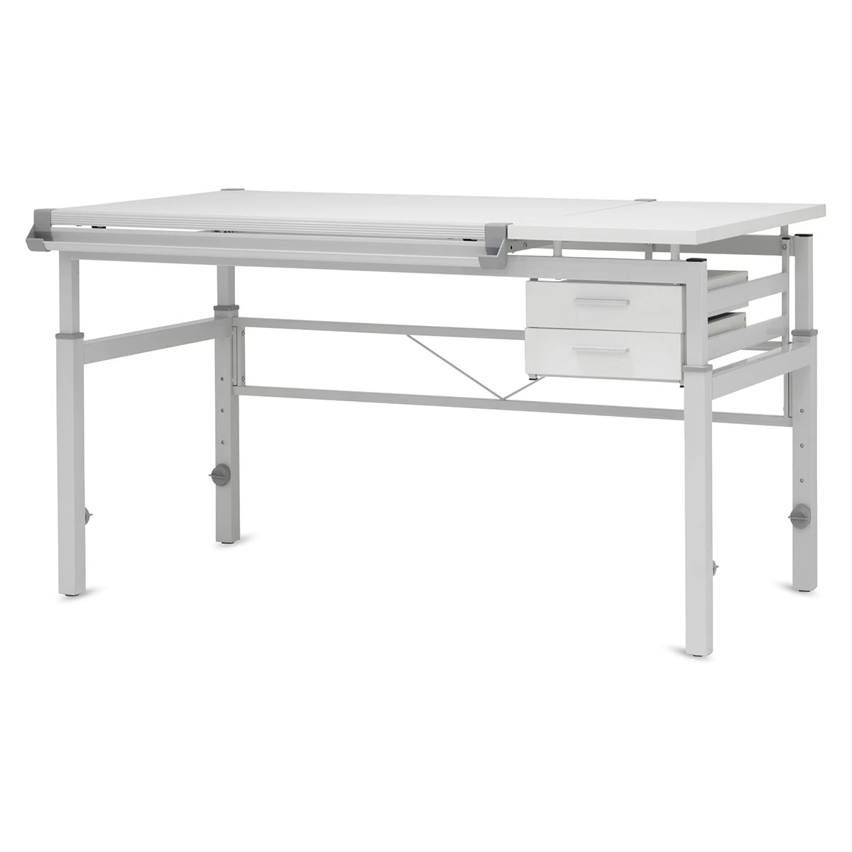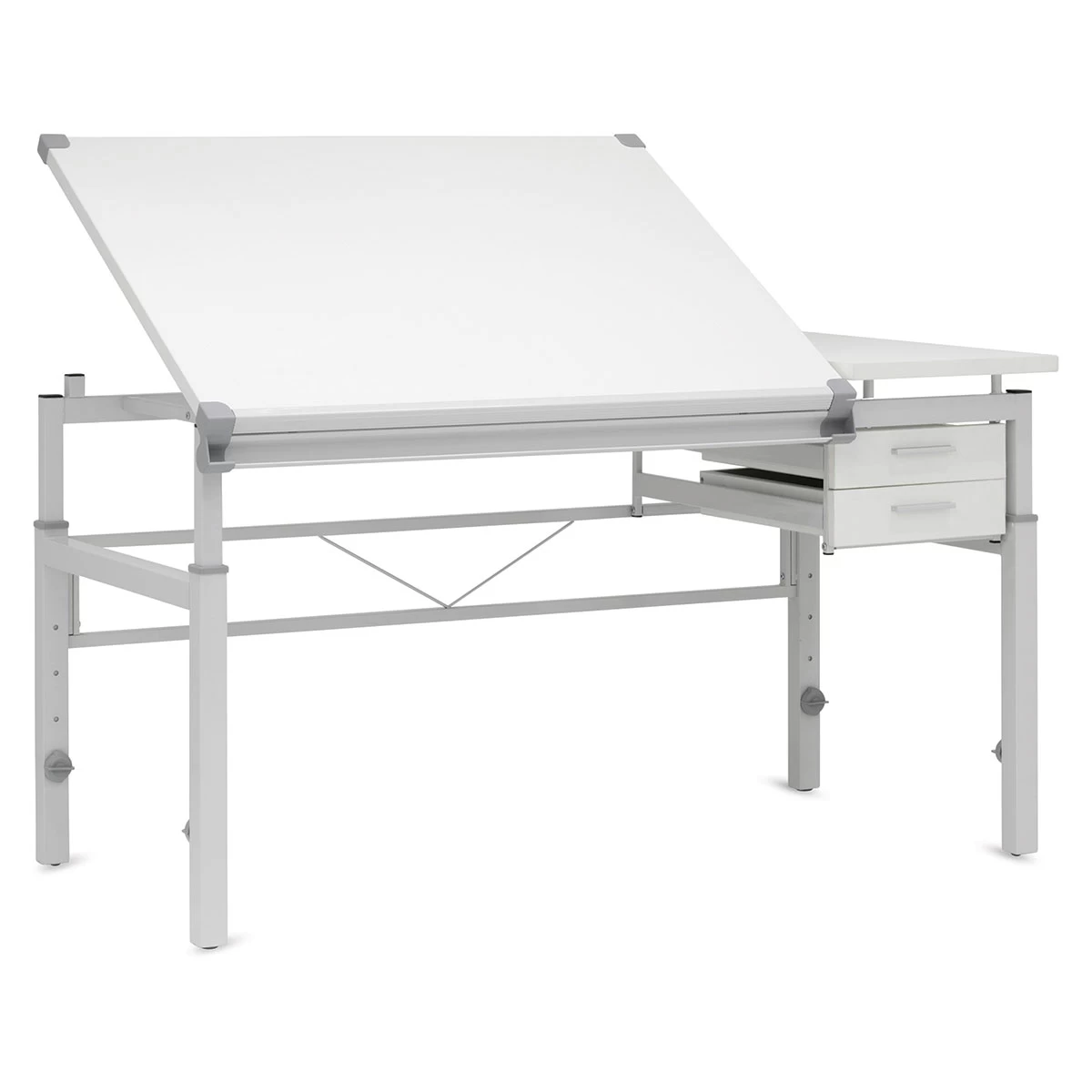 Perfect for multitasking, the Studio Designs Graphix II Pro Line Table With Drawers has a split top — one side is flat for a laptop and supplies, and the other side adjusts to 30° for drawing.