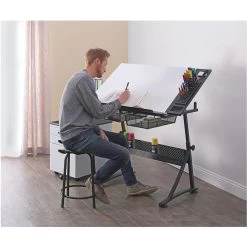 These convenient art table organizers fit most Studio Designs tables (including the Fusion Center and the Solano Drafting Table) as well as other 5/8″ to 3/4″ thick tabletops. Made with durable powder-coated s…