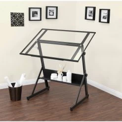 The Studio Designs Solano Drafting Table is possibly the coolest drafting table we’ve seen. Don’t be fooled by its simple design — the triangular shape keeps it rock steady, and the tilt angle goes from flat to an almost perfectly vertical 85°.