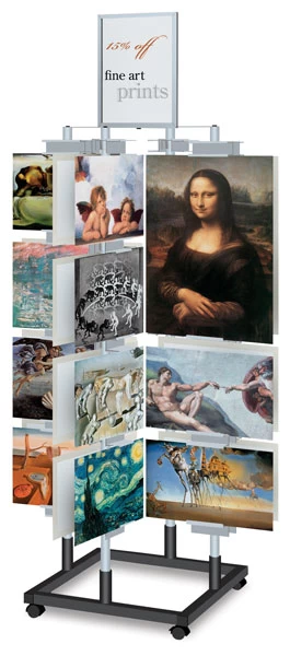 Ideal for shows and presentations, this stylish two-tone matte silver and black finish art tree accommodates up to 32 works of art and features an 11″ × 17″ (28 cm × 43 cm) vertical frame header.