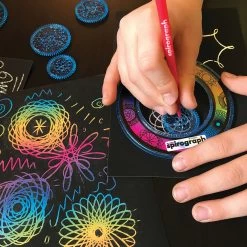 Create intricate, sparkly designs with the Original Spirograph Scratch & Shimmer Set. Use the stylus tool with the glitter wheel and gears to scratch designs on the special sparkle or rainbow scratch paper. You can also use your own pens to draw Spirograph designs on regular paper. The set include a…