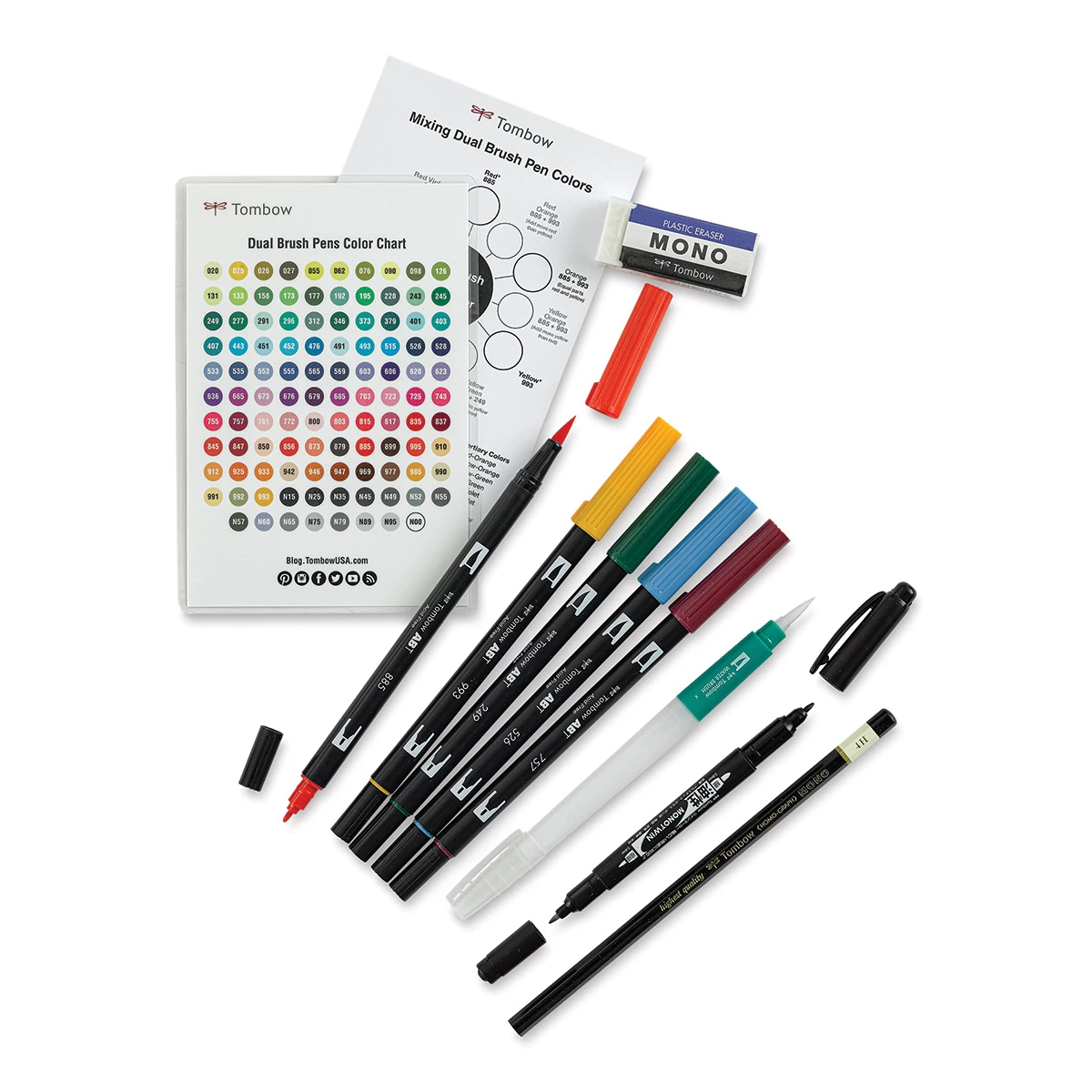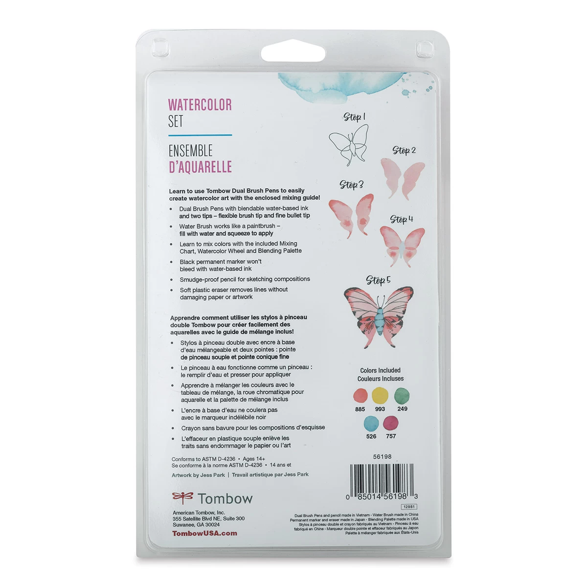 Create vibrant watercolor artwork and calligraphy with the Tombow Watercolor Set. Perfect for artists of every skill level, each ten-piece kit includes five Dual Brush Pens with a flexible brush tip on one end and a fine tip on the other. Dual Brush Pens contain waterbased ink, allowing you to use t…