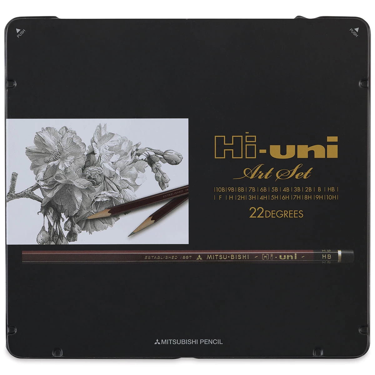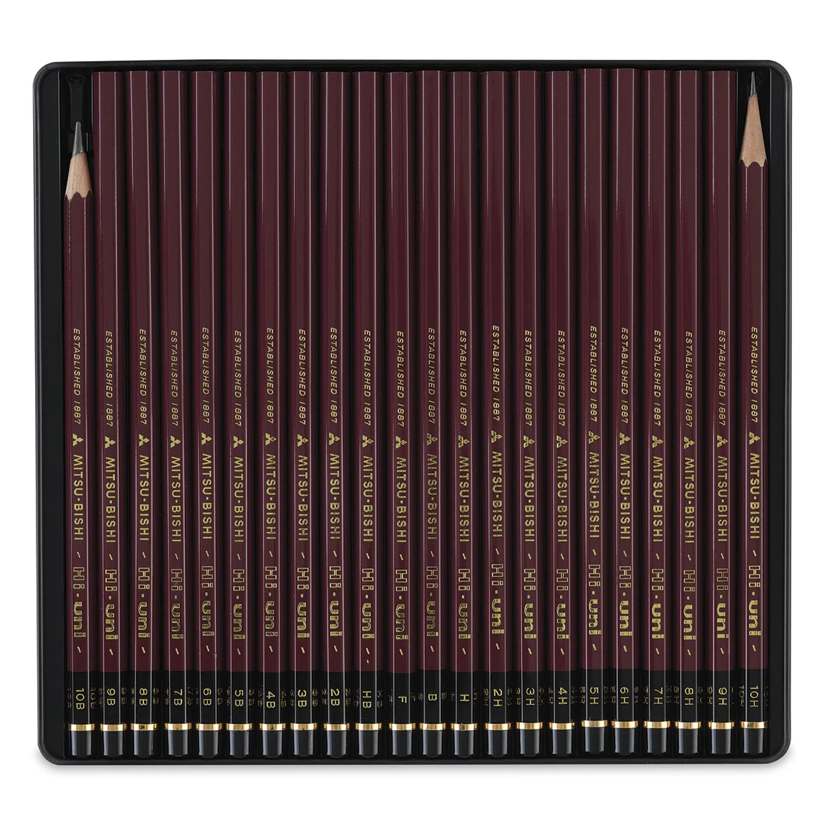 Hi-uni Graphite Pencils are known for their smooth laydown as they create rich, dark, even lines in drawings and sketches. The Hi-uni Graphite Pencil Set includes 22 different hardness grades, one each of 10H, 9H, 8H, 7H, 6H, 5H, 4H, 3H, 2H, H, F, HB, B, 2B, 3B, 4B, 5B, 6B, 7B, 8B, 9B, and 10B, in a…