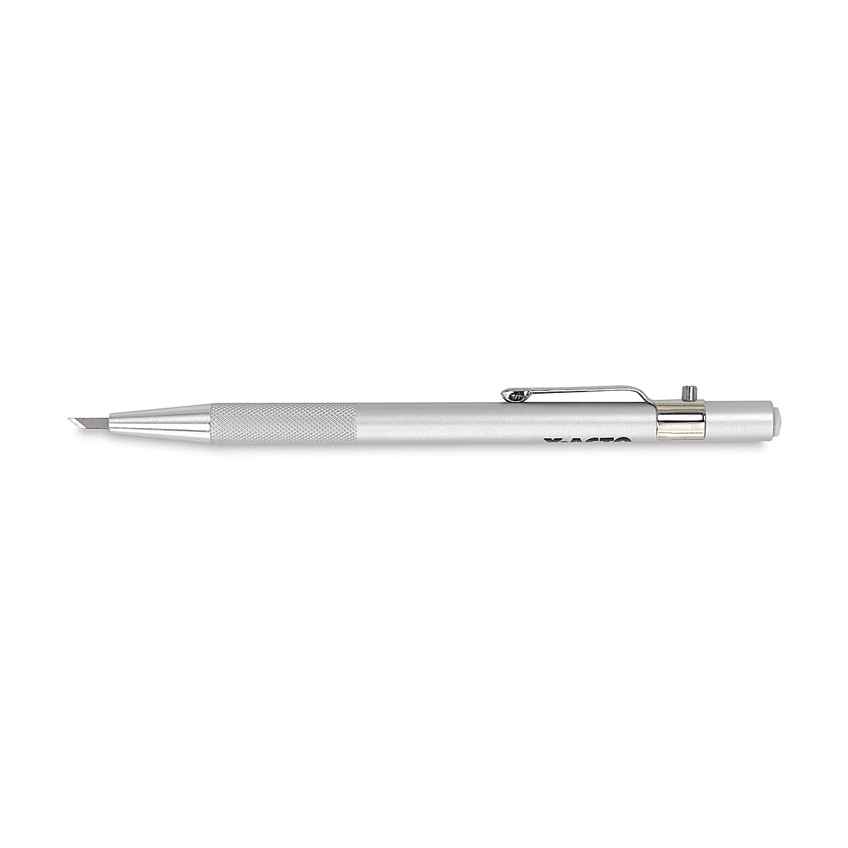 Similar in appearance to a pen, this handy knife features a razor-sharp cutting blade that retracts when not in use. Use it for making precise cuts through paper, delicate fabrics, and more. The knife features a sleek aluminum barrel, a handy clip, and an X-Acto #9 retractable blade.