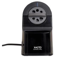 Versatile and easy to use, the X-Acto Pro Electric Pencil Sharpener is ideal for classrooms. It features a dial with six holes to fit most graphite or colored pencils. The sharpener’s printed indicator points to the size setting.